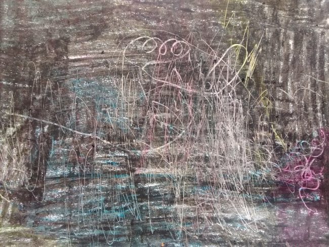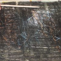 - A continuación, cubrimos toda la cartulina y los colores que habíamos pintado con la cera de color negro.