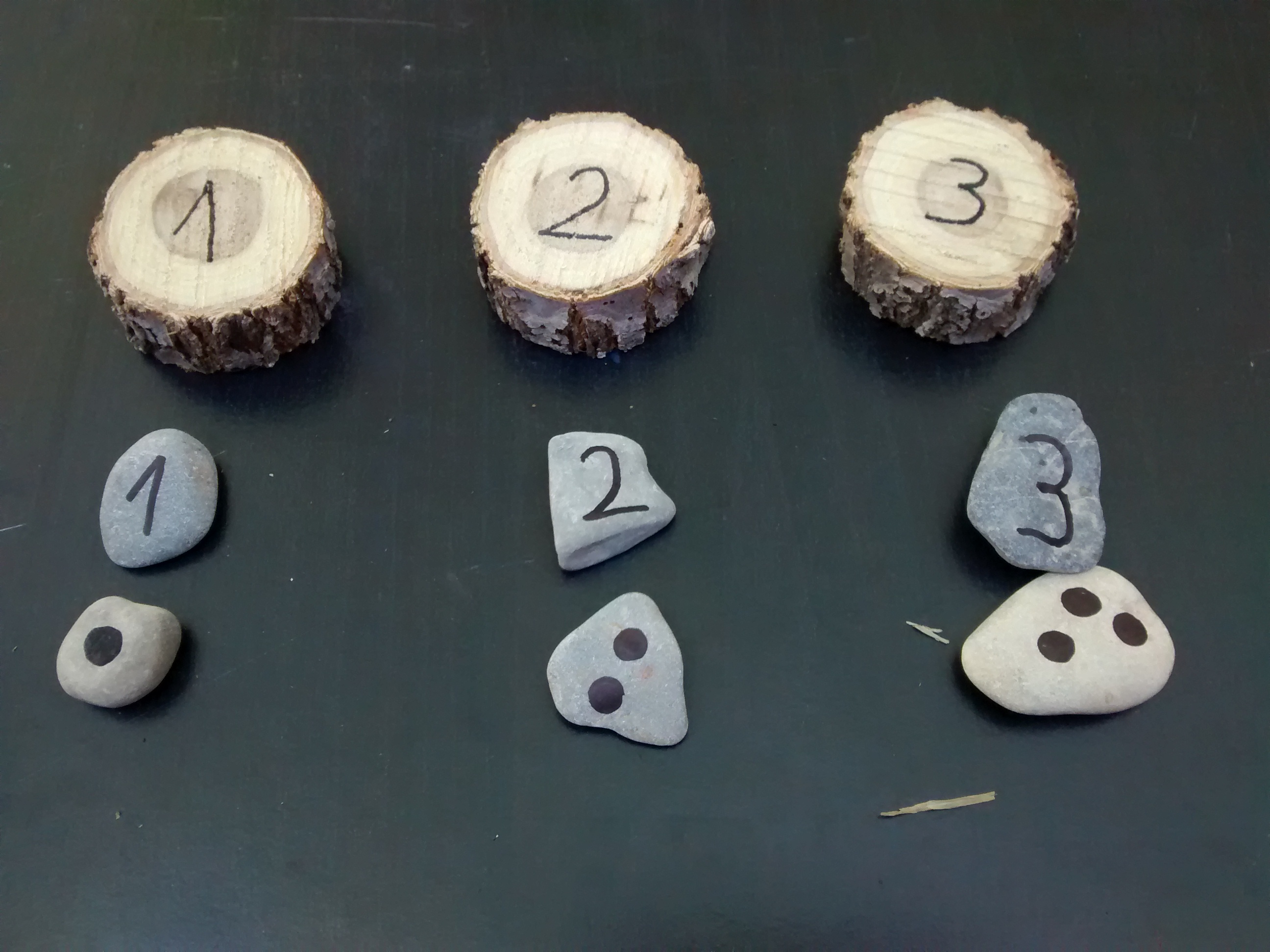 También hemos pintado puntitos del 1 al 10 en las piedras para relacionarlas con los contadores.