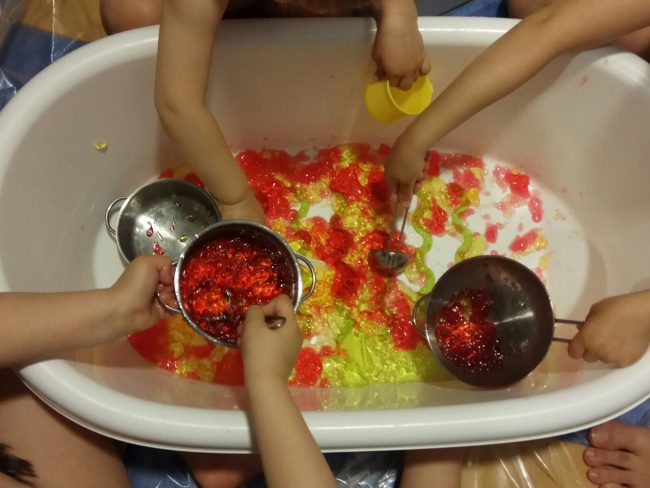 Trajeron utensilios de la cocinita de juguete y jugaron a los trasvases, a hacer comiditas…