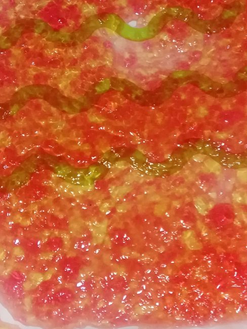 Podéis preguntarles cómo sienten la gelatina al tocarla (pegajosa, resbaladiza, suave…), a qué sabe, qué olor tiene, qué ocurre cuando mezclamos los colores…