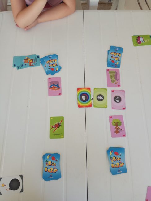Es un juego de cartas muy rápido (las partidas duran unos 20 minutos) y dinámico pensado para niños de a partir de seis años y de 3 a 6 jugadores, por lo que resulta perfecto para las familias numerosas. Está compuesto por las cartas de juego normales, 10 marcadores, 5 cartas bomba y 5 cartas de color.