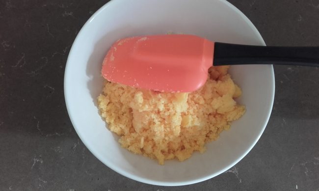 Se pica la corteza de la naranja, una vez picado se añade el azúcar glass y se pica un par de segundo todo junto. Se reserva.