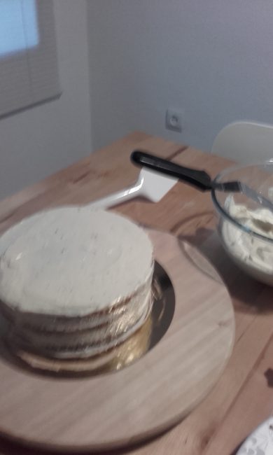 Éste ha sido el resultado de la tarta montada con la crema. Ojalá pueda subir pronto la crema que he hecho pero sin utilizar la Thermomix. ¡Hasta pronto!