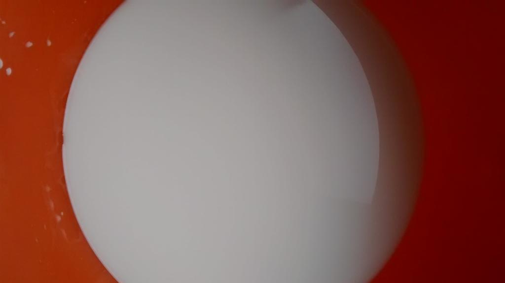 Calentamos 3/4 de vaso de agua y lo mezclamos en un recipiente con un vaso de cola blanca, añadimos el colorante, el tomillo y la purpurina y removemos bien. El tomillo es para darle aroma a la masa.