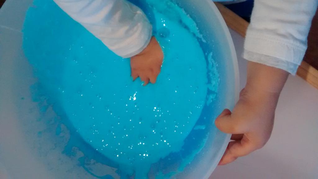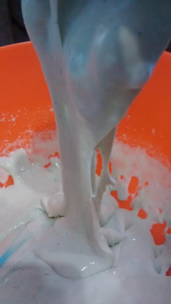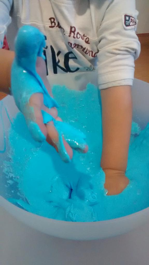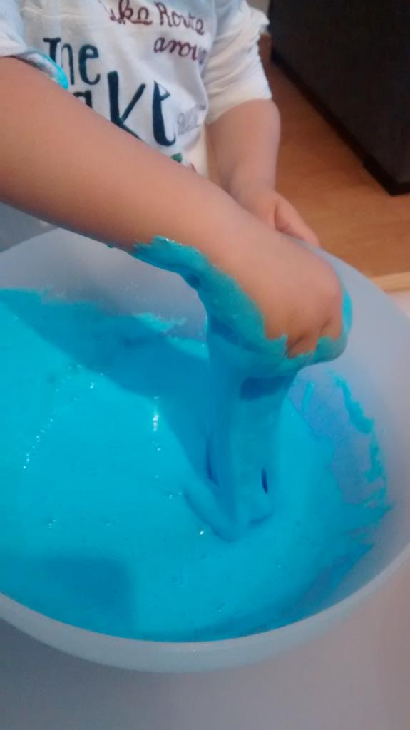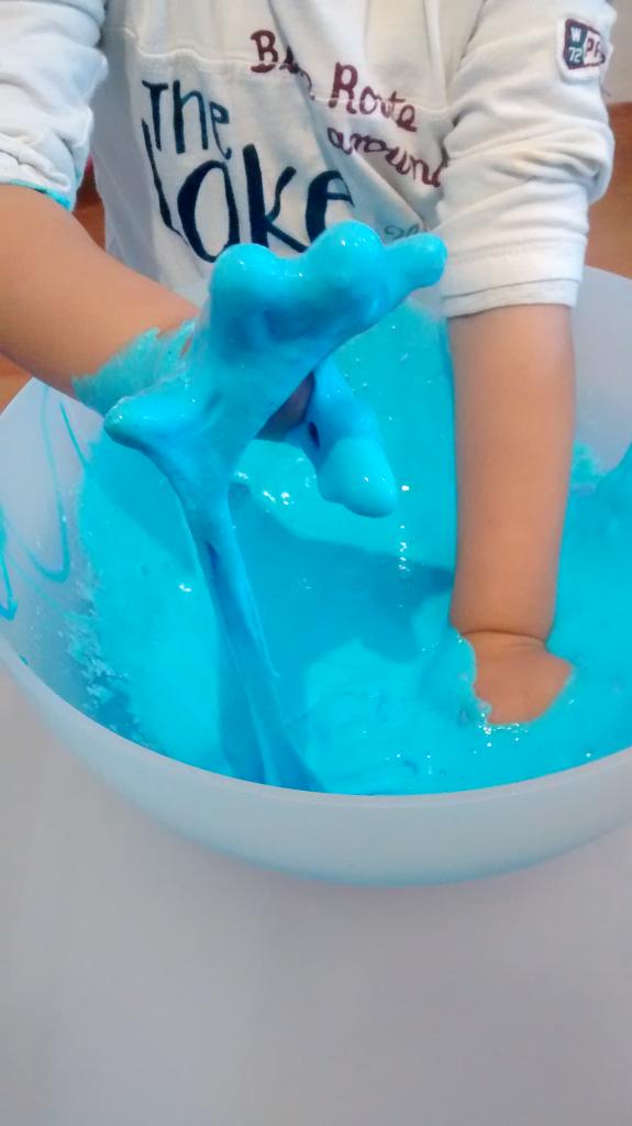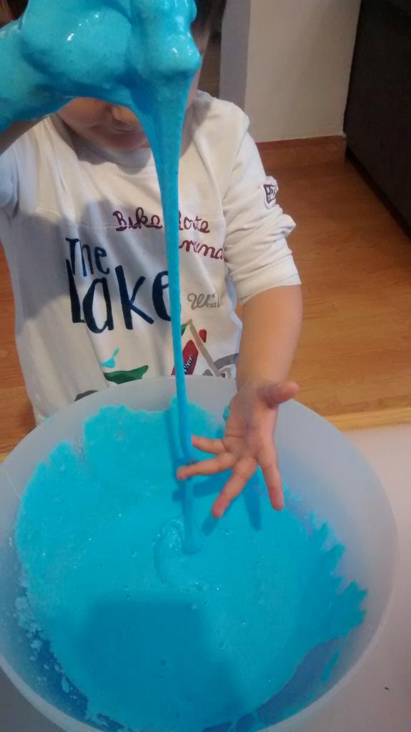 *Importante: el Bórax es un compuesto químico y la cola también por este motivo no puede ser ingerido. Mis hijos tienen dos años y no se lo han llevado a la boca, pero les he advertido varias veces antes de presentarles la masa que no debían de comerlo ni probarlo.
