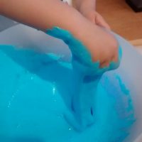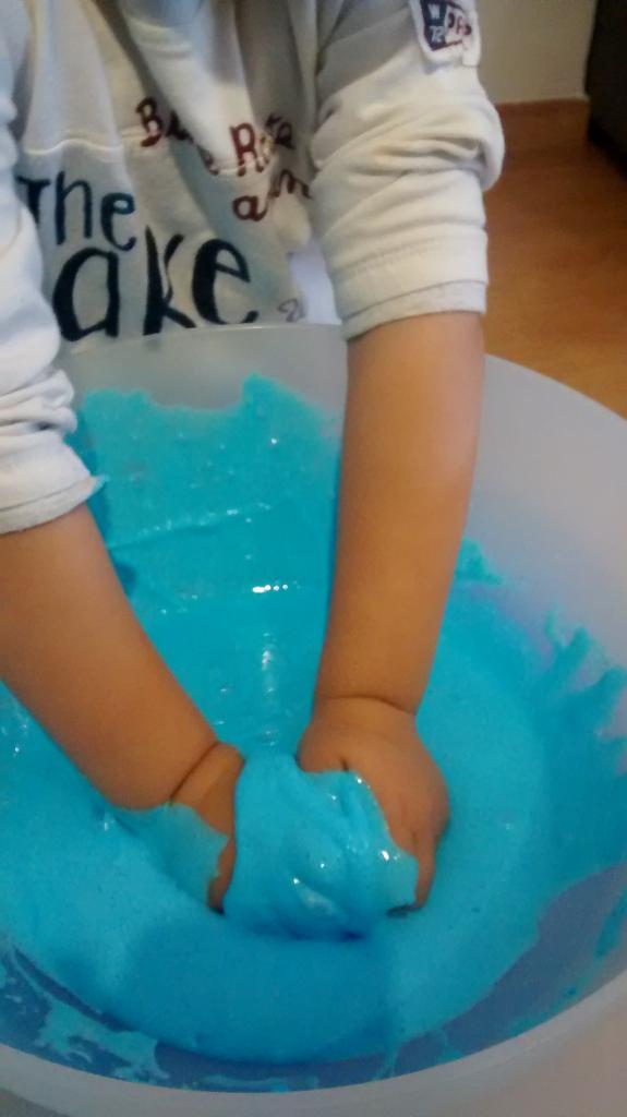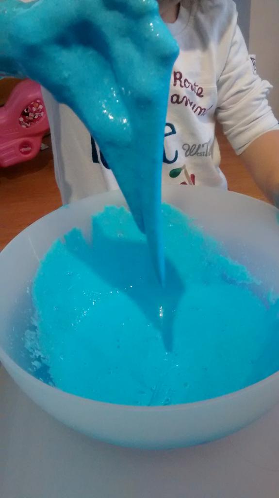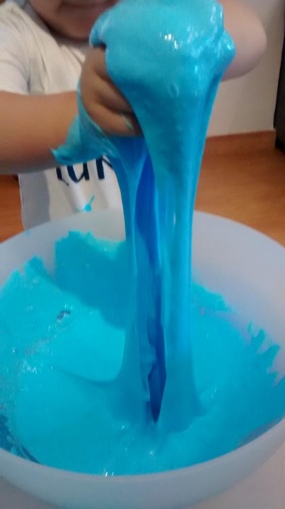 Y aquí os dejo otra receta de blandiblú SIN Bórax que he encontrado en este blog y hemos probado con ingredientes naturales, de manera que si lo prueban, como mucho les dará un poco de dolor de estómago ¿la diferencia entre una y otra? la receta con Bórax y cola es más viscosa, esta un poco menos, pero os aconsejo para niños pequeños esta por la tranquilidad que da saber que si la prueban, no pasa nada.