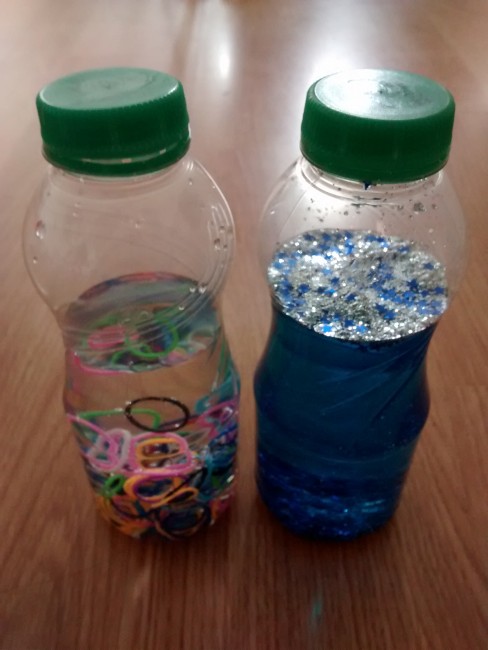 Tarde de Sábado haciendo botellas sensoriales con los peques.