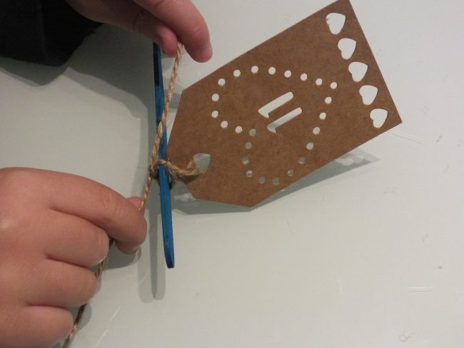 Los niños han ido anudando cada etiqueta a un palito de helado.