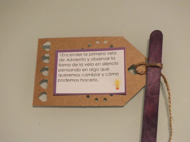 Cada día, los niños cogerán un palito de helado con mensaje y lo leeremos, una vez leído, lo pondremos en un botecito que hemos preparado para ver cómo van pasando los días de Adviento.