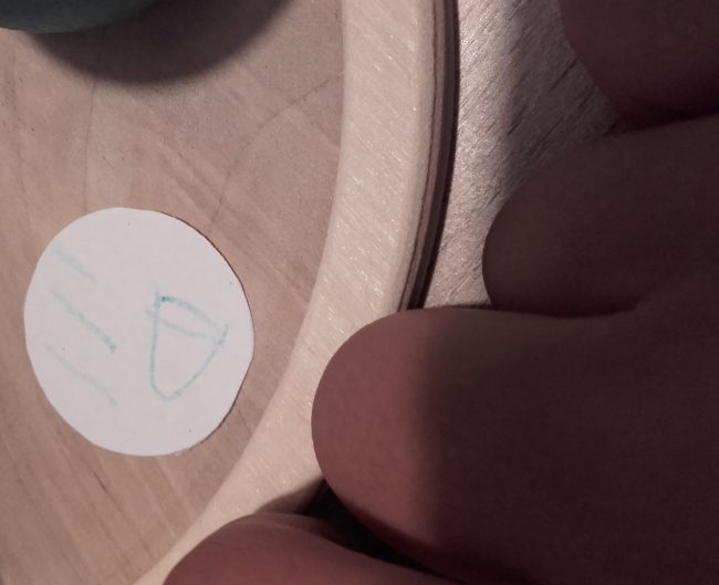 Cada día que termina guardamos dentro de su casita al nin- bellota y le dejamos dormir, giramos la rueda para preparar el próximo día y así al levantarnos, despertamos al siguiente, poniéndolo en el centro del plato, dejando su espacio sin nada. Por la tarde (como he comentado antes), pensamos en algo por lo que dar gracias y lo representamos en esos pequeños círculos que ponemos en el hueco que hemos dejado al poner al nin en el centro. Cuando el nin se va a dormir y vuelve a su sitio, lo colocamos encima del círculo. La próxima semana los iremos reponiendo por las nuevas cosas que dar gracias…