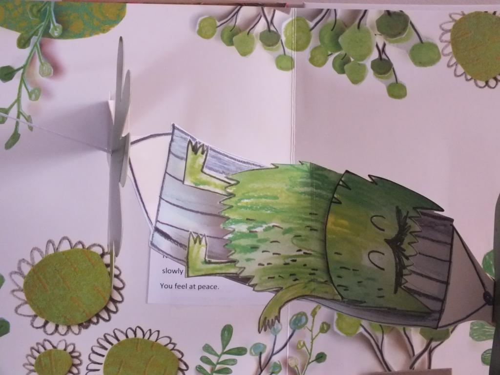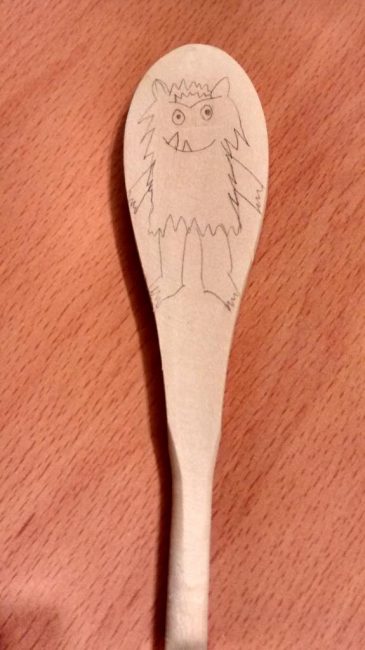 Una vez pasó la semana, leímos el cuento de “El monstruo de colores” de Anna Llenas, pero esta vez durante el día y con marionetas de cucharas de madera de cada monstruo, normalmente lo solemos leer por la noche para calmarnos antes de dormir o cuando ha surgido algún conflicto a lo largo del día.