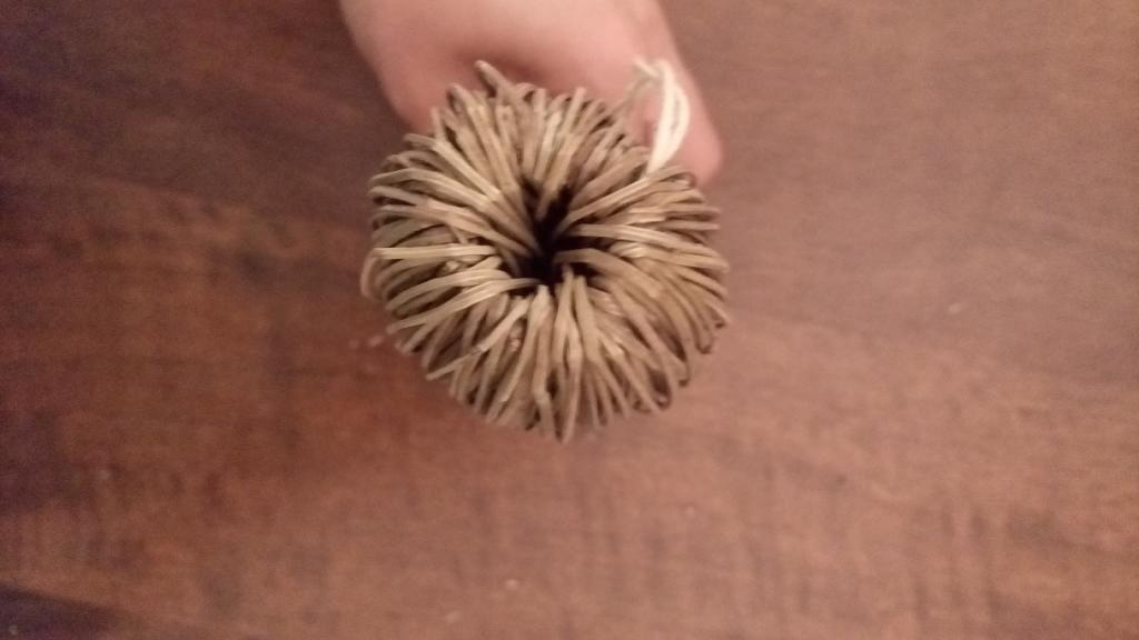 Cuando hayáis tapado las flores por completo con los tallos, volvemos a atar el manojo con fuerza dejando la cuerda larga para poder colgarlo del armario y cortamos lo que sobra de los tallos.