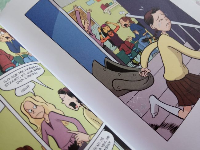 Considero que las novelas gráficas son un excelente medio para enganchar a los niños a la lectura porque se leen rápido debido al poco texto que contienen y se puede seguir muy bien la trama gracias a las ilustraciones. ¡Bravo, Mary Anne! es muy agradable y ameno de leer gracias a las ilustraciones tan actuales y la fantástica adaptación de los diálogos que realiza la autora en esta edición tan cuidada de El club de las Canguro.