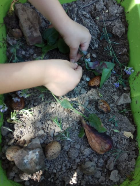 Nosotros estamos aprovechando las vacaciones para poner en práctica algunas de las actividades que sugieren en el libro, una de las que hemos hecho es un mundo natural en miniatura (clasificación de una hoja). Consiste en crear un hábitat imaginario lleno de flora y fauna en miniatura que tenga sol, plantas, animales… además de un lugar donde los animales puedan refugiarse o anidar. Éste es el hábitat que han construido mis hijos, lo han hecho ellos solos y la verdad es que les ha gustado mucho (hasta han puesto caracoles).