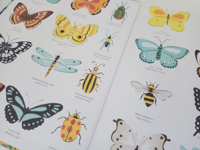 La portada es preciosa, con reflejos dorados y las guardas del libro son realmente especiales, una selección de insectos cuidadosamente ilustrados y detallados que muestran la diversidad de especies que existen, en su mayoría bellas mariposas. La obra viene presentada en formato 22×28 cm y tapa dura.