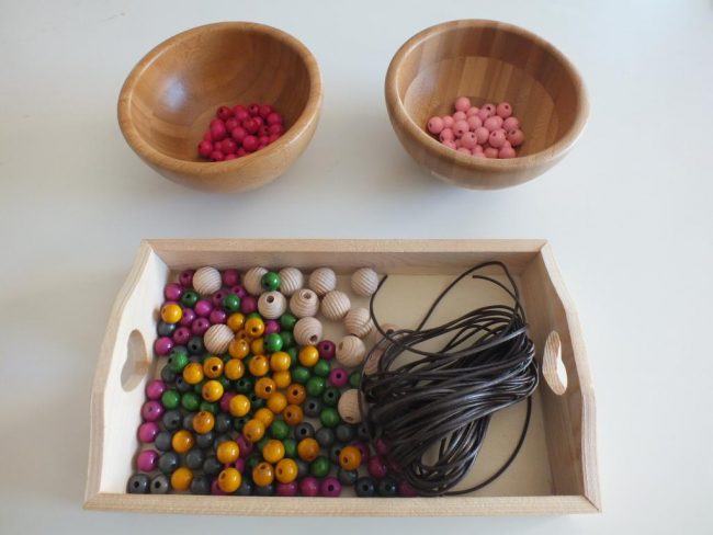 Hemos utilizado 365 bolitas de madera de distintos colores,cada bolita representa un día del año y cada color es un mes, de modo que, tendremos 30 o 31 bolitas en cada mes excepto en Febrero que habrá 28 o 29 bolitas, dependiendo si es año bisiesto o no. Fuimos a una tienda de abalorios y manualidades y los niños escogieron los colores para cada mes, 6 colores cada uno y entre los dos eligieron las bolitas para fechas señaladas, posiblemente hubiera quedado mejor con una gama de colores correlativos, pero a mí me pareció genial que los niños eligiesen solos los colores que querían para cada mes.
