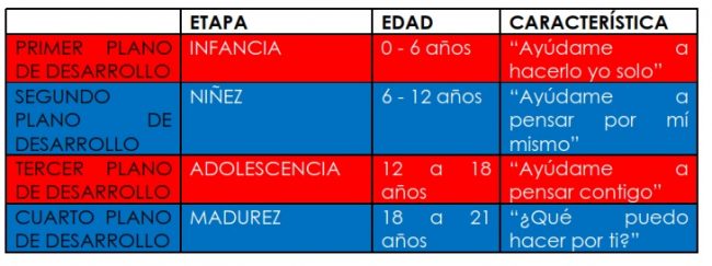 María Montessori partió para establecer estos planos de desarrollo de la siguiente idea “La educación es una ayuda para la vida”.