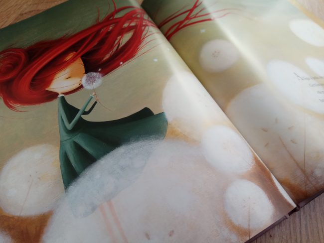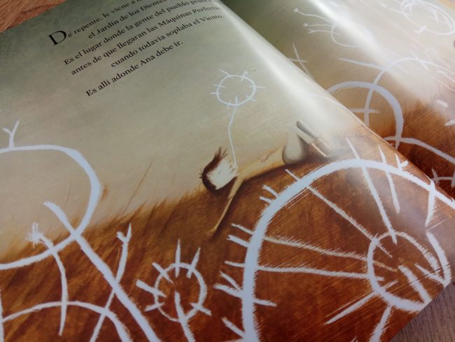 Las ilustraciones de Valeria Docampo son realmente preciosas. Repletas de tonos ocre, beig y blancos donde destacan los colores del cabello y el vestido de la protagonista, las bellas ilustraciones de Valeria complementan el texto tan lleno de sentimientos y sueños escrito por Noelia Campos. Este álbum ilustrado me ha sorprendido porque no suelen llamarme la atención las ilustraciones oníricas como estas, sin embargo, debo de reconocer que me he llevado una grata sorpresa al descubrir un encanto especial en la dulzura que transmite Valeria Docampo a través de ellas.