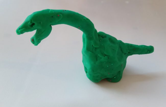 Aprovechando unos fósiles, minerales y dinosaurios que teníamos por casa los hemos situado en la línea del tiempo y hemos modelado con plastilina nuestros dinosaurios preferidos.
