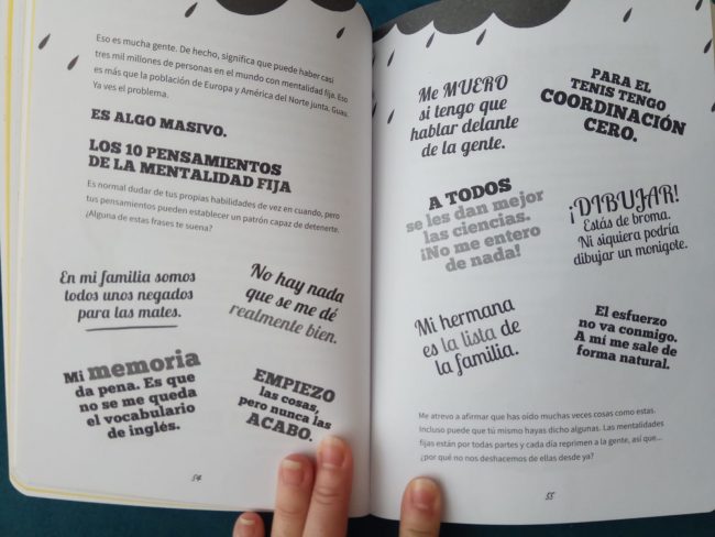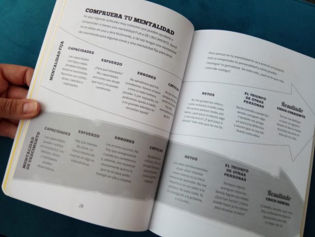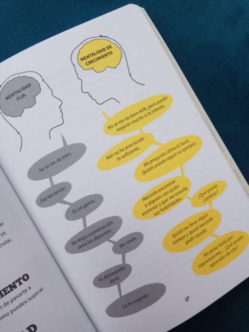 El autor explica detalladamente qué es la mentalidad y que existe una mentalidad fija y otra de crecimiento. La mentalidad fija es la que nos limita, la que nos hace pensar que hagamos lo que hagamos, nada va a cambiar porque no hay gran cosa que podamos hacer para cambiar algo por mucho que nos esforcemos porque nacemos con talento o sin él.