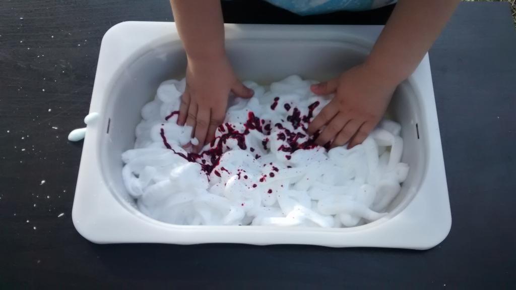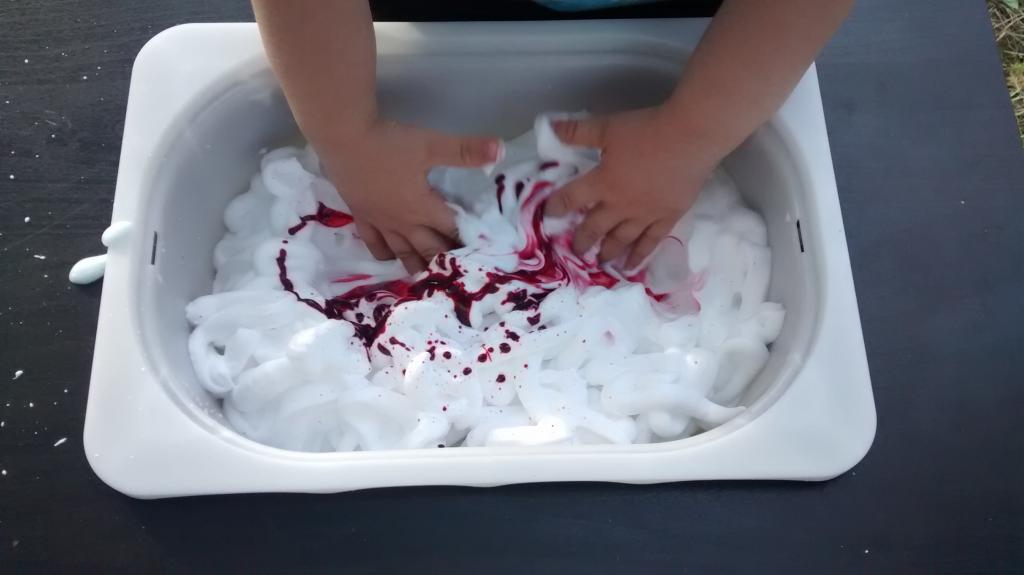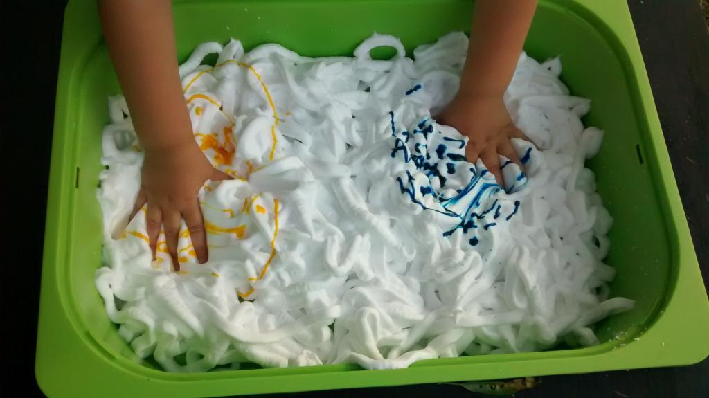 Espuma de colores sensorial. Juego sensorial.