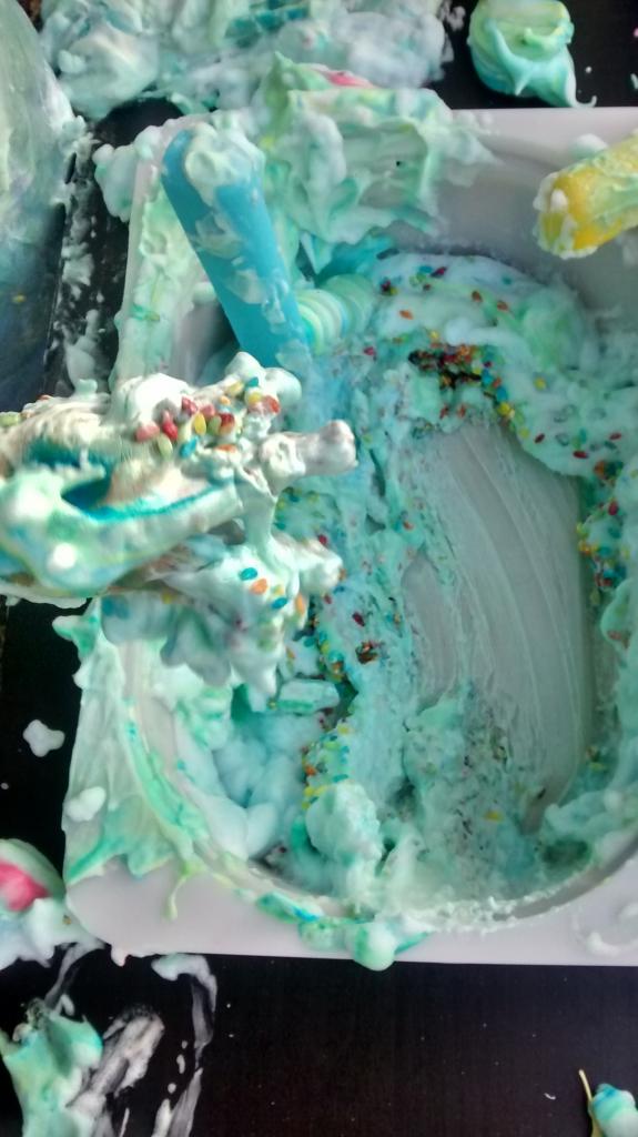 Tengo que decir que mis hijos tuvieron una paciencia infinita de no meter las manos mientras hacía todo esto porque estaban ansiosos por empezar a jugar y experimentar.