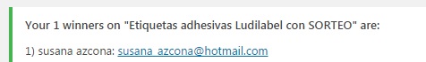 Y la ganadora es ¡Susana Azcona! ¡Enhorabuena! Cuando puedas envíame todos tus datos para el envío. Gracias a todos por participar.