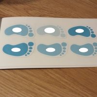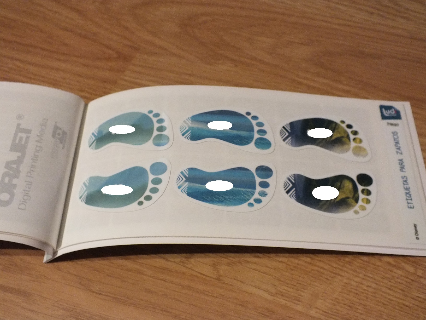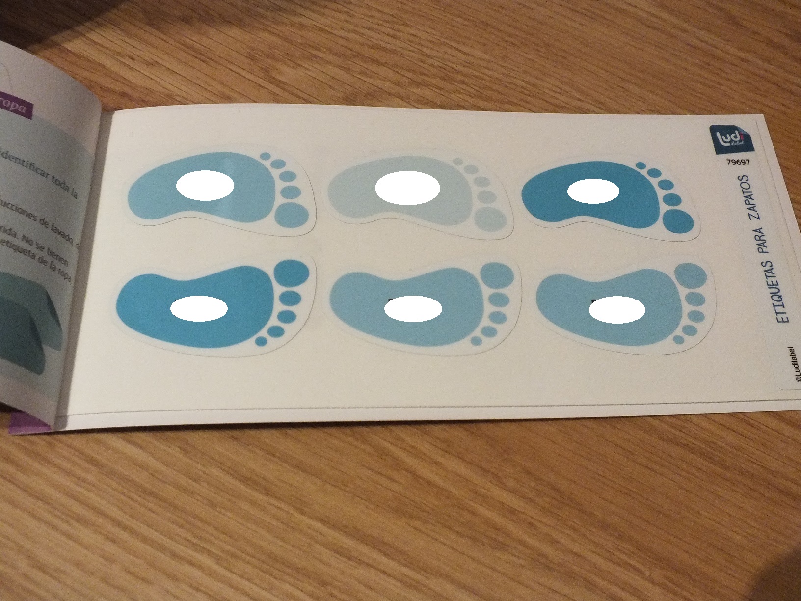En cuanto a las etiquetas para los zapatos, son muy prácticas. Nosotros tenemos las que vienen en el pack más unas que nos enviaron específicamente para los zapatos. Los niños las pegaron en el interior de sus zapatos, a la altura del talón, y desde entonces, se fijan al colocarse los zapatos en el pie que viene dibujado en la etiqueta y en el suyo, ven la similitud o diferencia, y les resulta mucho más fácil saber en qué pie va cada zapato SIN NUESTRA AYUDA.