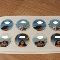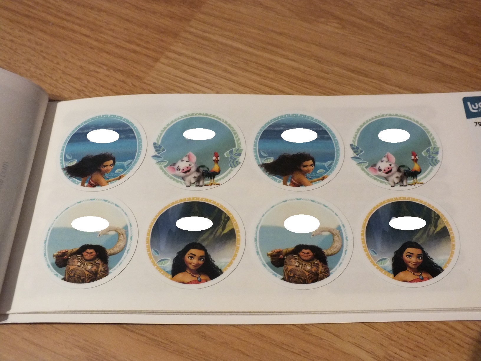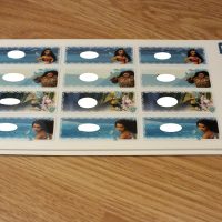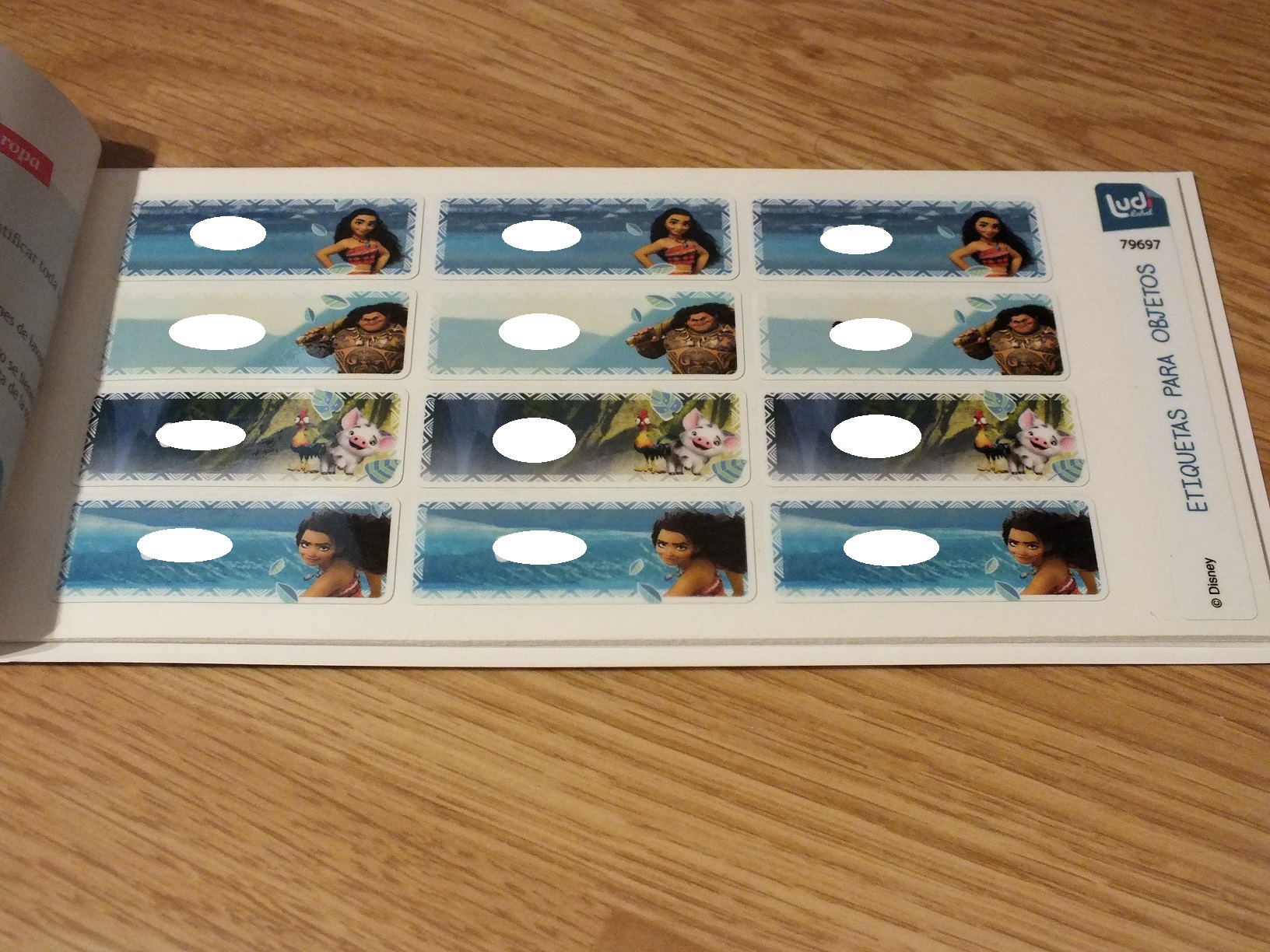 Aprovechando el estreno de la nueva peli de Disney, Vaiana, han creado unas etiquetas adhesivas con los dibujos de los personajes de la película. No solamente tienen etiquetas de Vaiana, sino que se puede personalizar tanto la tipografía del nombre y los datos que quieras incluir como el color, el dibujo… los peques eligieron los colores que querían y el tipo de letra.