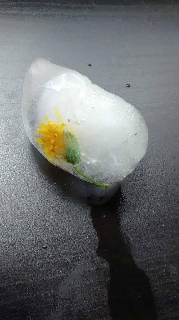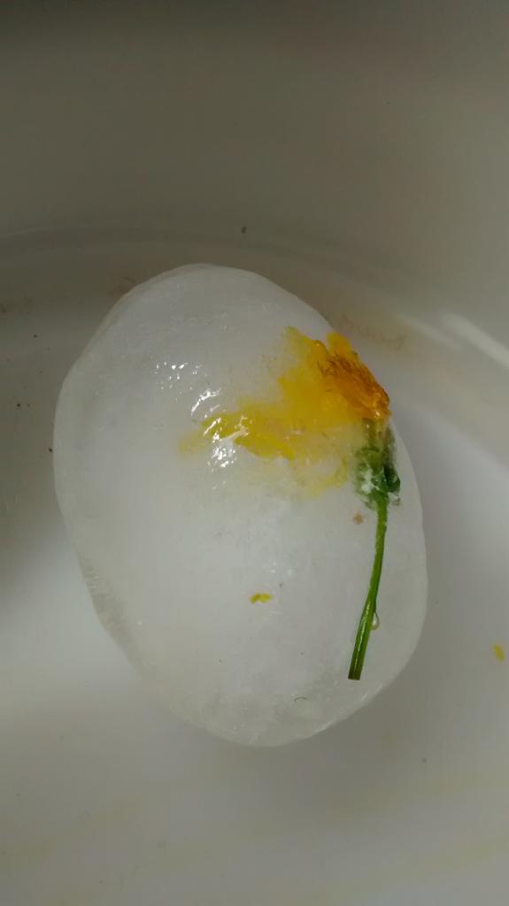 Los peques las golpearon con las mazas, pero debo decir que era un día que hacía mucho calor, así que eso ayudó a que el proceso fuese más rápido. Finalmente, rociaron el hielo con agua para poder sacar las flores con facilidad.