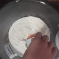 Una vez metidos todos los ingredientes, hemos mezclado con una espátula al principio y después con la mano. En este paso hay veces que se me queda un poco seca cuando utilizo el azúcar vainillado, si veo que me pasa esto le pongo un chorrito de leche.