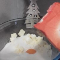- 150 gramos de mantequilla (a temperatura ambiente y además la corto en taquitos)
