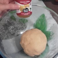 En esta ocasión hemos hecho dos masas. Una masa con aroma a vainilla (me gusta más utilizar la pasta para añadirle el sabor pero, como no tenía de vainilla en casa le hemos puesto el azúcar vainillado que venden en el supermercado) y otra masa con aroma a limón (con pasta concentrada de limón).