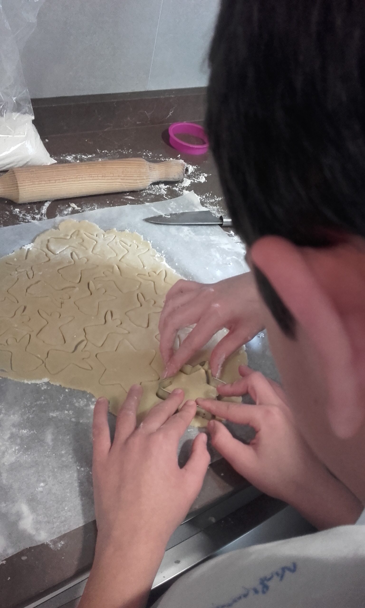 Hoy quiero compartir con vosotras las galletas que hemos preparado para los profes de nuestro gran niño. No sabía qué regalarles este año y se me ocurrió comprar pequeñas cajitas y hacer galletas en casa. Así que hoy, entre otras cosas, hemos dedicado parte del día a hacer galletas.