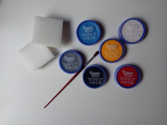 En cuanto a pinturas de cara, comenzamos utilizando las pinturas en barra cuando los niños eran pequeños porque me parecían más cómodas porque no se estaban quietos al maquillarlos, pero con el tiempo, descubrimos unas pinturas al agua con pincel que nos funcionaron muy bien hasta hace poco que descubrimos las pinturas Face Paint de Jovi.