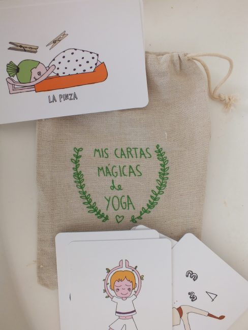 - Juego de cartas mágicas de Yoga. En cada una de las cartas hay una ilustración que representa una asana o postura de Yoga orientada a niños y niñas con las que podrán practicar yoga a través del juego y mejorar su concentración, memoria e imaginación.