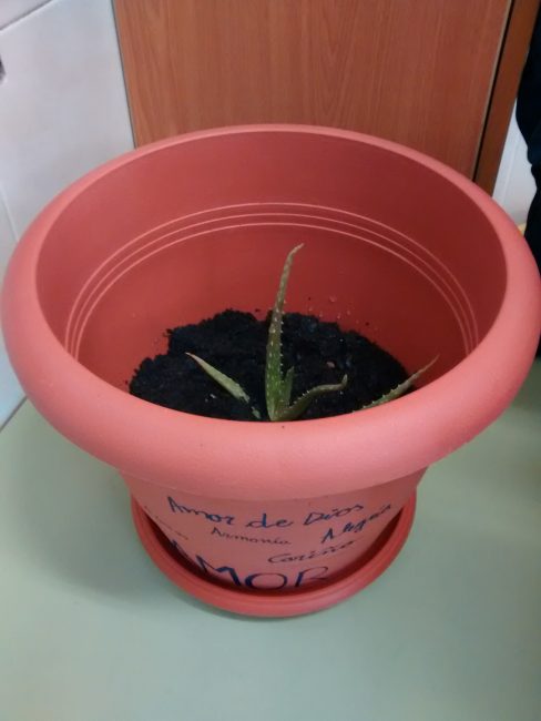 Entre todos plantamos un hijuelo de Aloe Vera y esperamos ver a lo largo del curso cómo va creciendo y dando lugar a nuevas plantas, de manera que podremos establecer una similitud entre las plantas que crecen y se reproducen y las palabras y actos buenos que generan cada vez más paz si multiplicamos las buenas acciones y palabras y reducimos las que nos causan dolor o tristeza.