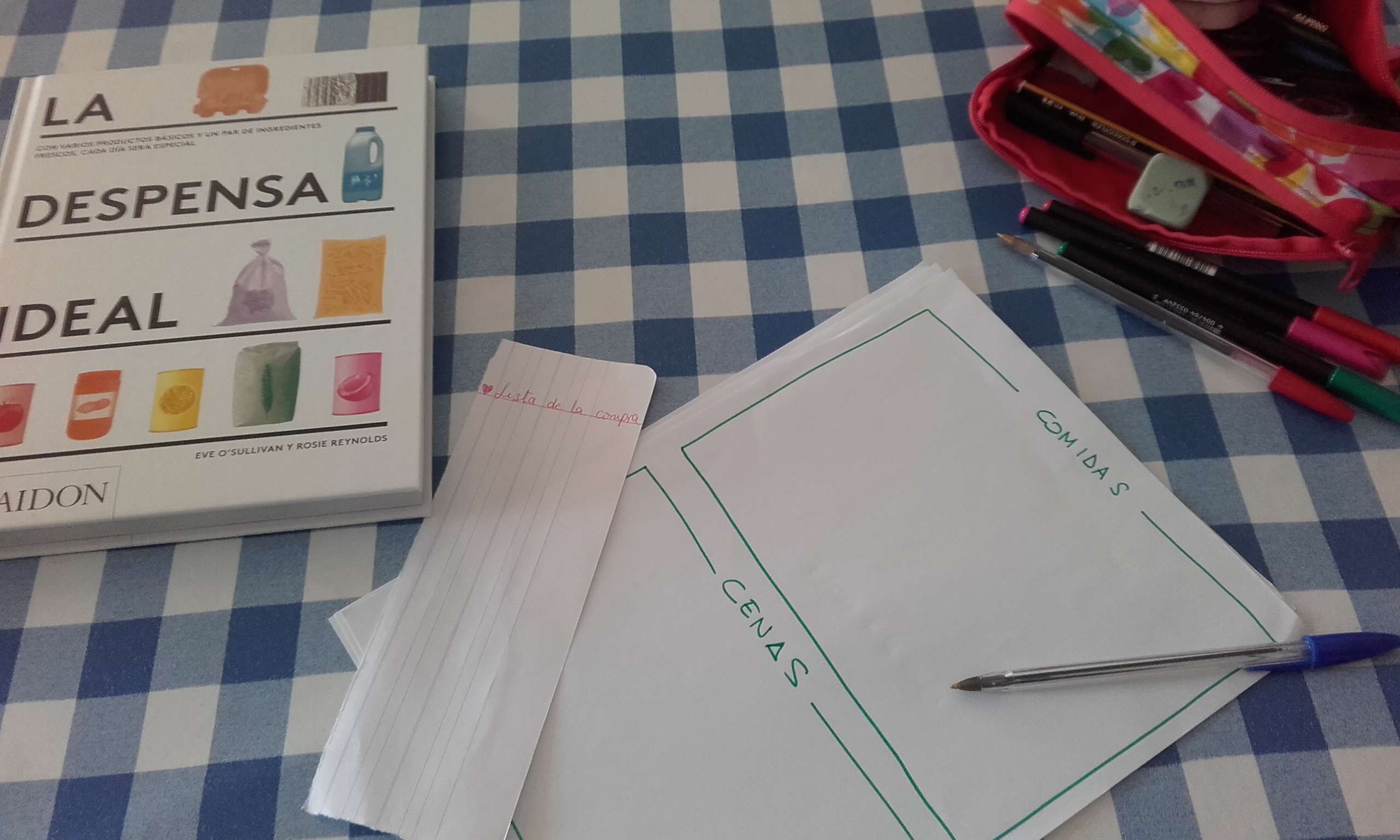 Empecé este verano haciendo en modo «casero» mi lista de la compra a partir de lo que había leído en La despensa ideal (algunas cosas – pocas – no me gustan así que yo directamente las obvié porque no las veo en mi «fondo de armario») y además hice un listado de comidas y cenas para organizarme mejor.