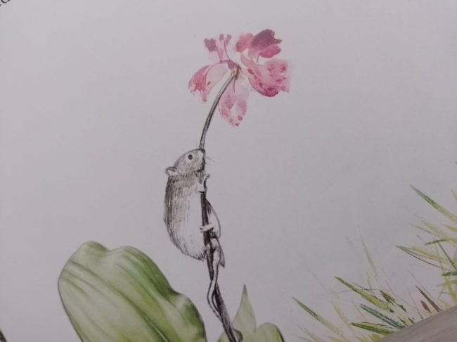 Mis hijos también han jugado a buscar un pequeño ratón de campo que aparece en varias páginas, les encanta jugar a buscar y pararse a mirar todos los detalles.