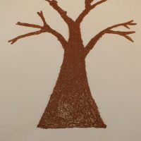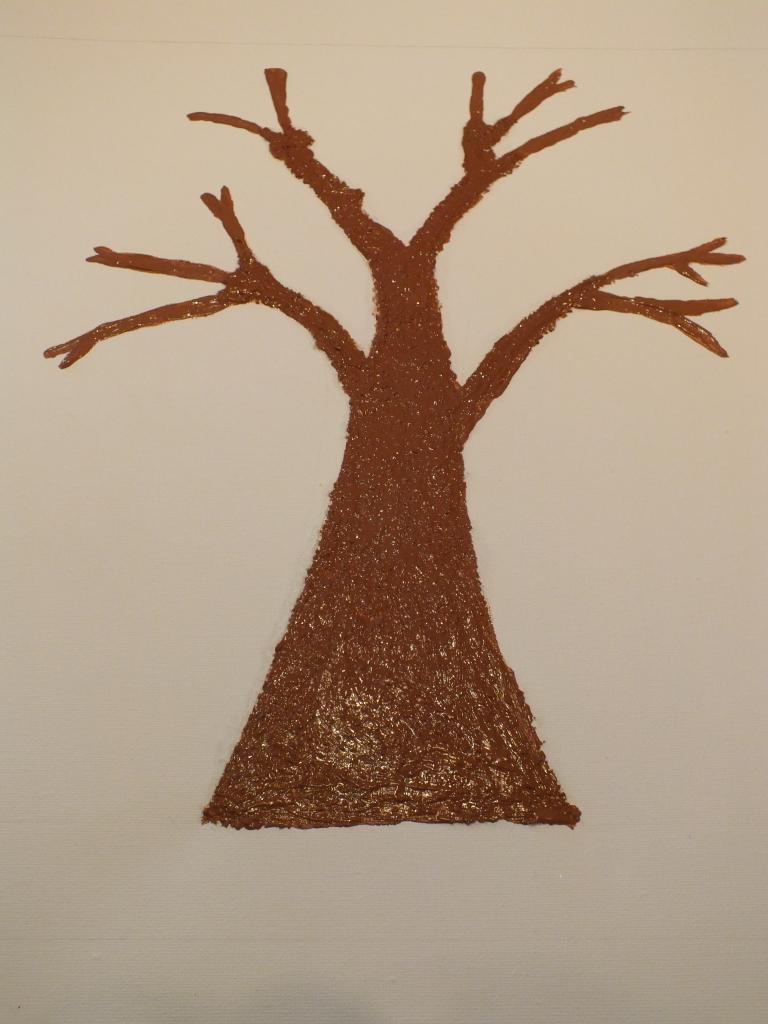 Al día siguiente, pintamos el tronco y las ramas del árbol con pintura marrón y lo dejamos secar.