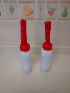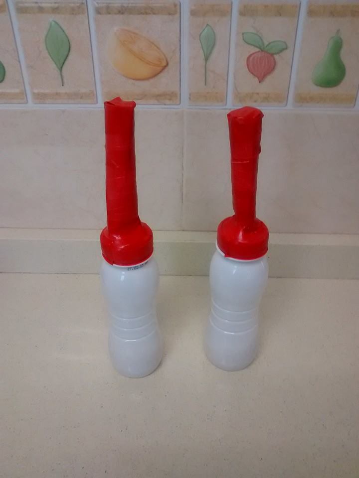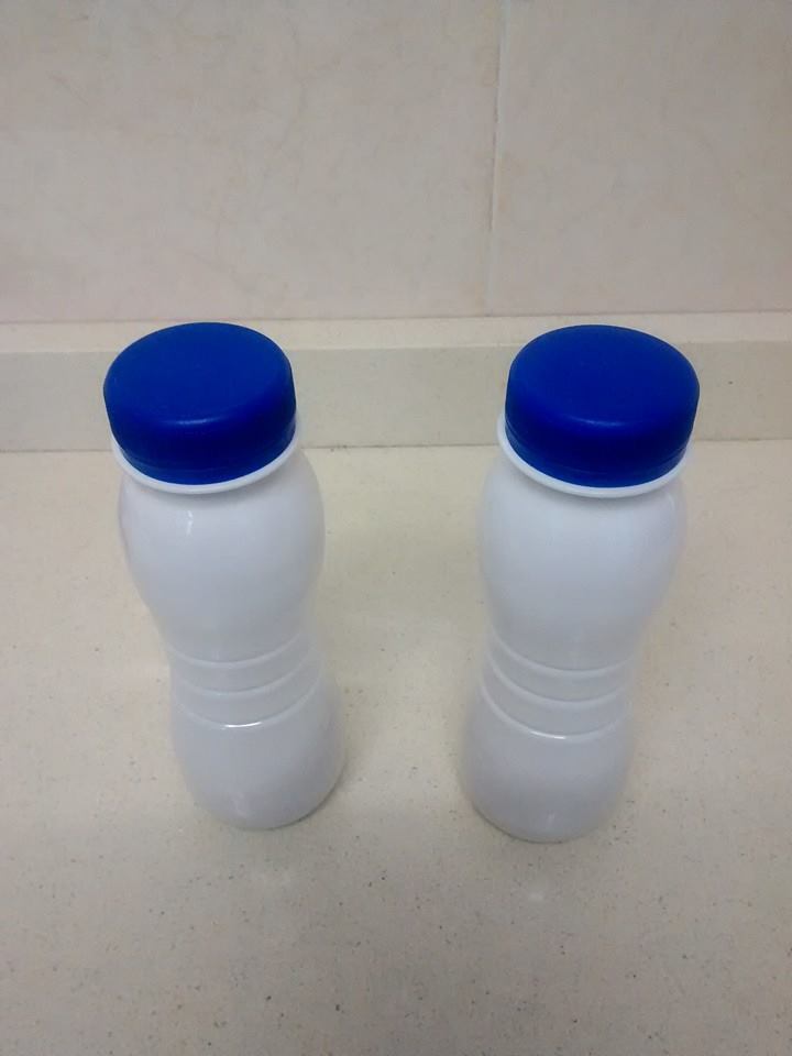 - Dos botellas pequeñas con tapón