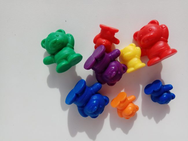 Levantad la mano los que, como yo, cuando érais pequeños pensábais que cualquier asignatura era más divertida que matemáticas. Es una sensación que me gustaría que mis hijos no tuviesen porque realmente, ahora me gustan las matemáticas pero es algo que no percibía así cuando era pequeña, así que cuando ví estos osos de colores, se me ocurrieron muchísimos juegos a los que mis hijos podían jugar y con los que estarían adquiriendo sin darse cuenta conocimientos matemáticos.