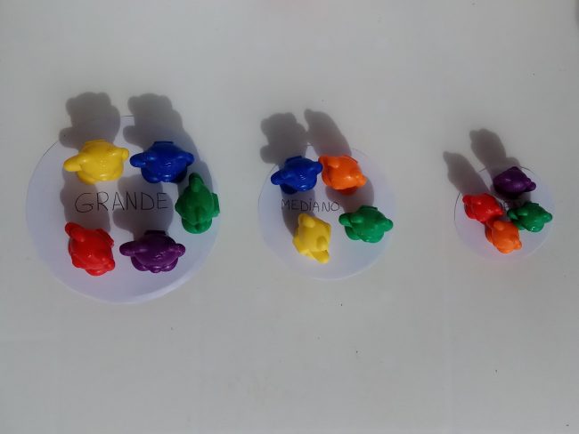 Utilizamos los osos para clasificarlos por colores y por tamaños utilizando estas plantillas muy sencillas que diseñé y os podéis descargar aquí gratis.
