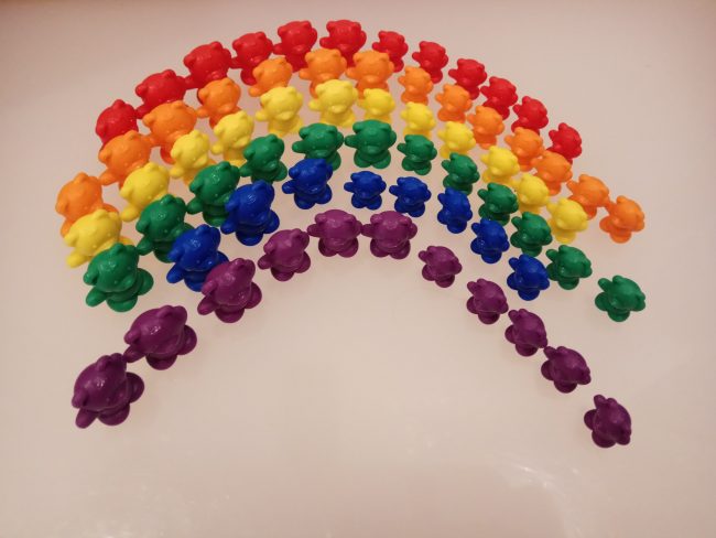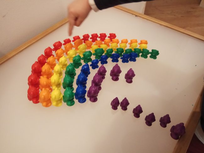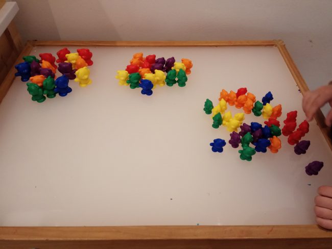 - Luego ha jugado libremente con los osos y juntos hemos hecho este precioso arcoiris.