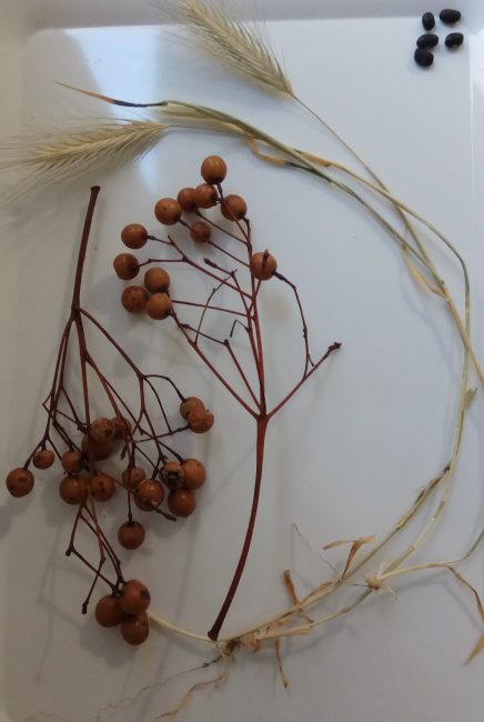 Nos parece tan importante que, con el paso del tiempo, hemos ido buscando un espacio en casa donde poder realizar observaciones. En lugar de tener una mesa de observación, nuestro lugar de observación es la parte superior del aparador del comedor, de manera que hemos aprovechado ese mueble para colocar en él en este caso elementos naturales, algunos de ellos relacionados con el otoño y que hemos ido recolectando en nuestros paseos por la montaña, en el pueblo… así que como podéis ver, no es necesaria una gran inversión, ni un espacio específico (aunque siempre debería de estar situada en el mismo lugar), ni una mesa en concreto.