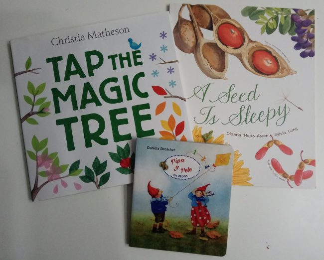 En nuestra mesa de observación tenemos también algunos libros ahora mismo relacionados con las estaciones del año y, en concreto, con el otoño, os enseño cuales son aquí.