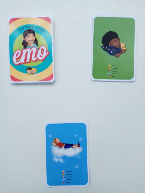 Emo es otro juego de cartas de Mut Kids. Se compone de 25 cartas que contienen una ilustración por cada emoción.