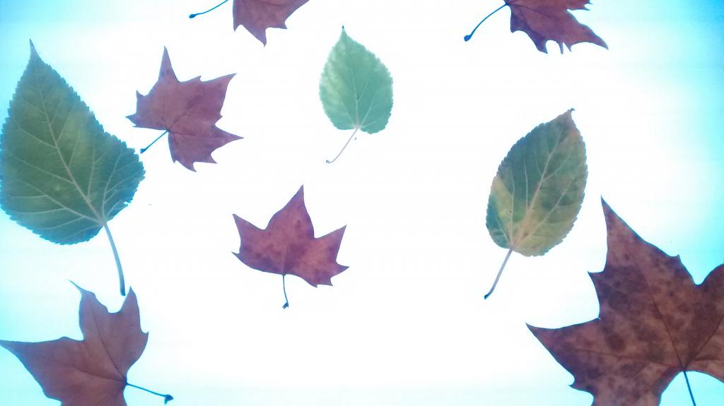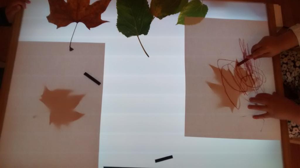 Encendimos la mesa de luz y estuvimos explorando las hojas, viendo sus nerviaciones, los colores, la forma… y después les expliqué cómo podían pintar una muy parecida.