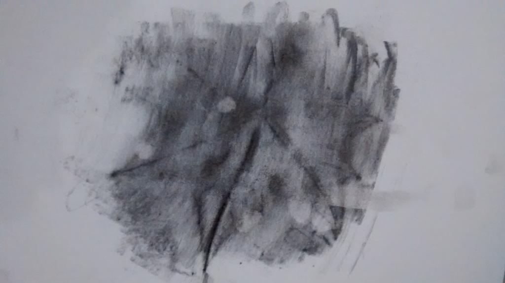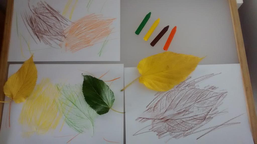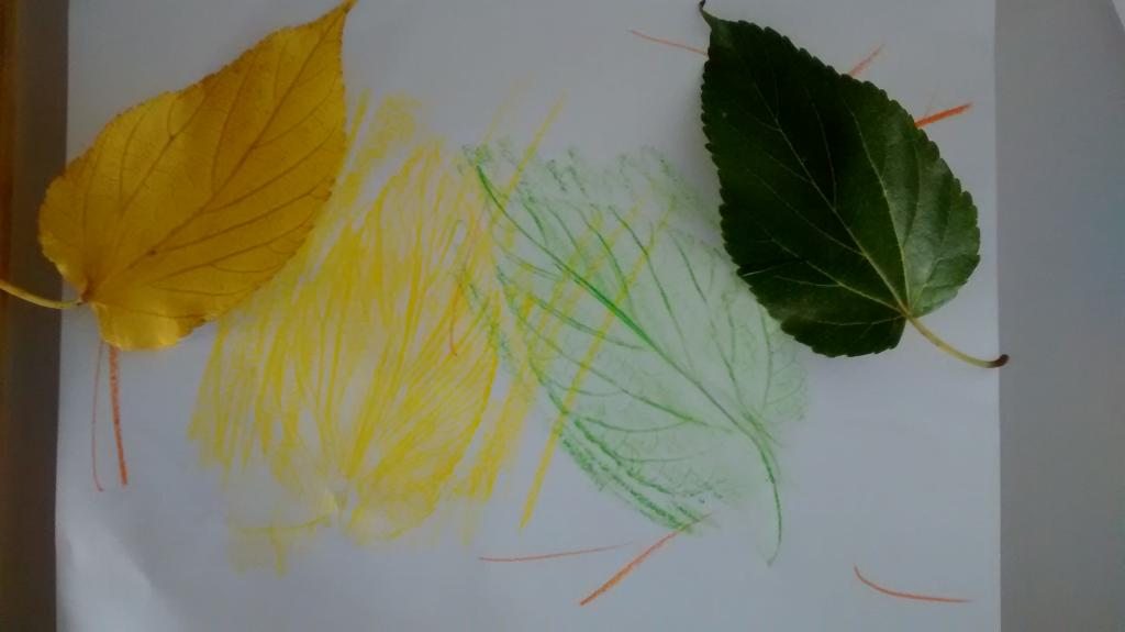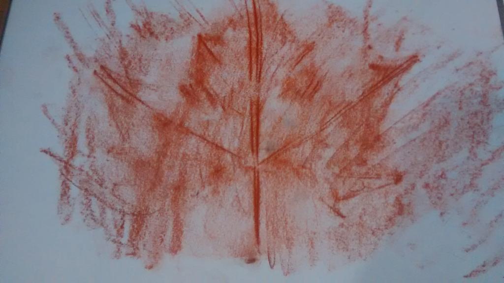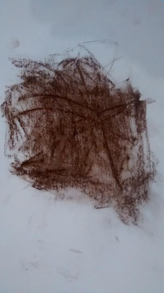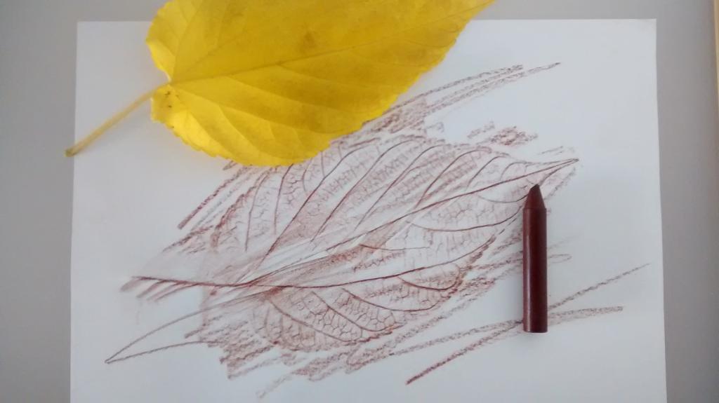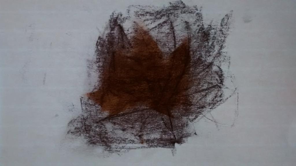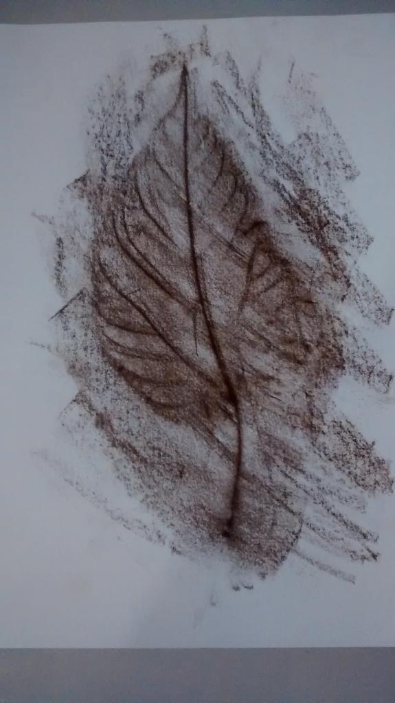 Cogí un folio y lo coloqué encima de la hoja, les mostré cómo debían sujetar con una mano el folio y con otra repasar por encima del folio la hoja con los carboncillos o las tizas y les dí folios para que lo hiciesen así si querían. Me daba lo mismo si salían dibujos más o menos bonitos, lo que quería era que experimentasen con los materiales y utilizasen otras técnicas.