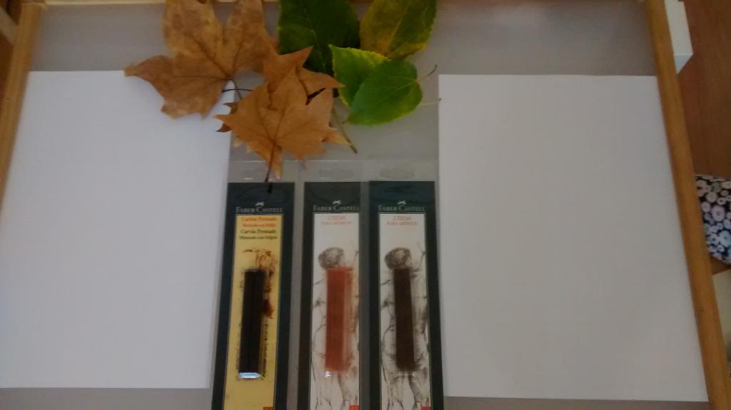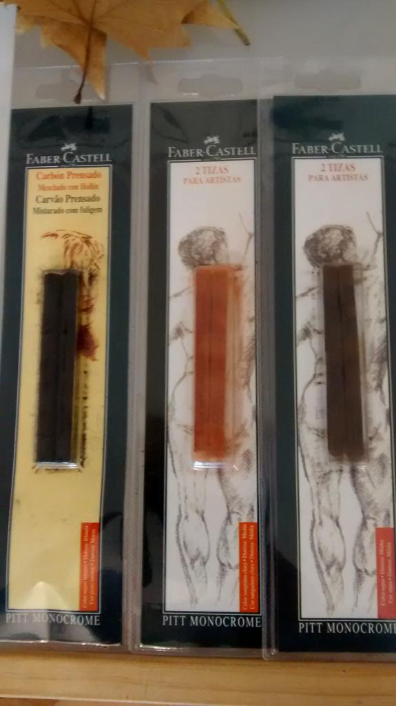 - Carboncillos naturales, tizas color sanguina y sepia (tengo esa marca porque me gusta mucho desde hace años, también está en lápiz).